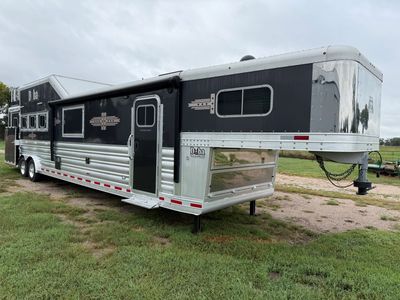 4 Horse, 7' Slide Out, Side Load, Enclosed Nose, 10' Integrated hay-pod, Full Rear Tack with Collapsible Wall, Full Width Ramp to Tack, Carpeted Tack, 4-Tier Saddle Rack, Shelving, Insulated Roof, Diesel Onan Generator, Drop Downs and Bars on Head, Drops off Rump, Air Flow Dividers, Outside TV, Laundry Door, Satellite and Solar Panels